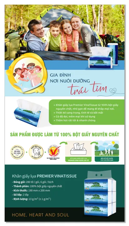 – Tên sản phẩm: Khăn giấy lụa đa năng PREMIER VinaTissue, 2 lớp – 100% bột giấy nguyên sinh, không chất tẩy, 280 tờ – chính hãng