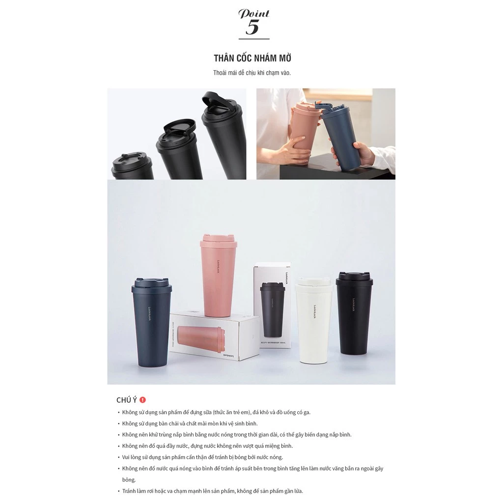 Ly giữ nhiệt LocknLock 550ml LHC3249, 400ml LHC3271, mở nắp một chạm, thép không gỉ inox 316L