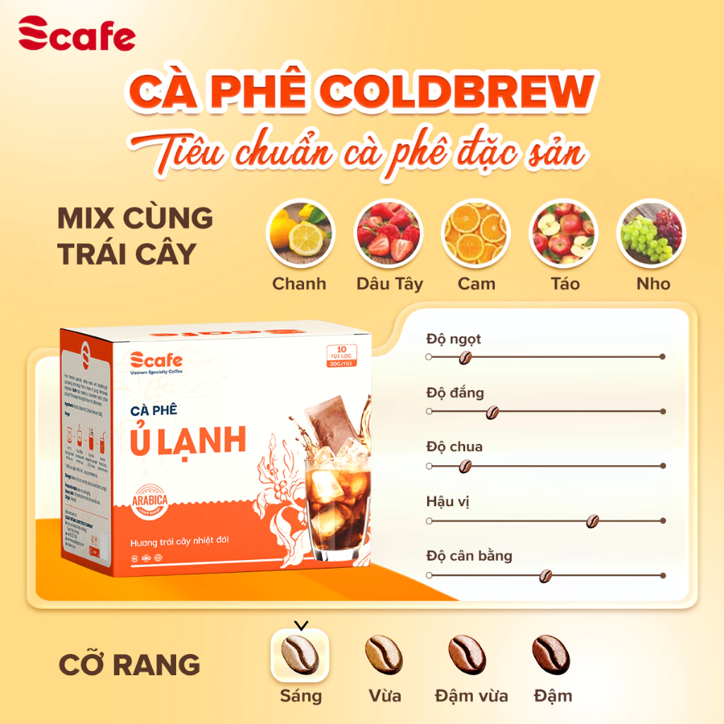 Thưởng thức hương vị cà phê độc đáo với sản phẩm cà phê cold brew của chúng tôi! Được chiết xuất từ những hạt cà phê nguyên chất, qua quá trình ngâm lạnh kéo dài, cà phê cold brew mang đến trải nghiệm uống cà phê tươi mát, không gắt, phù hợp cho mọi thời tiết.