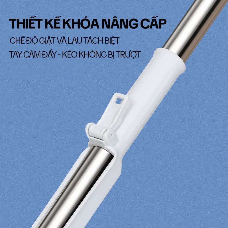 – Khóa nâng cấp thông minh: chế độ giặt và lau tách biệt, tay cầm đẩy kéo chắc chắn, không trượt.