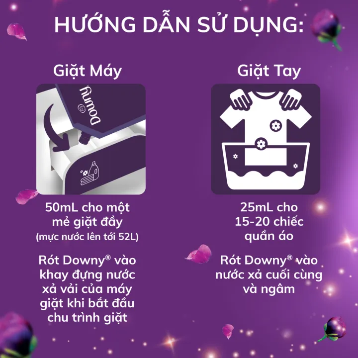 – Khuyên dùng nước xả vải Downy ở lần xả nước cuối khi giặt tay hoặc trong quá trình giặt máy.