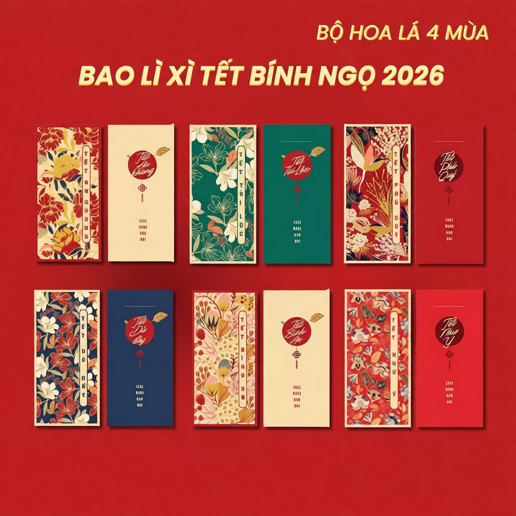 🌟 Điểm nổi bật của sản phẩm 🌟 – Thiết kế đẹp mắt: Bao lì xì Tết 2026 với các mẫu thiết kế độc đáo như Hoa Sen, Hoa Lá Bốn Mùa, và Tết Hoa Nhí, mang đến sự tinh tế và truyền thống. – Chất liệu giấy C150 cao cấp: Giấy dày, cán màng mờ, giúp bảo vệ phong bao khỏi trầy xước và tăng độ bền. – Kích thước phù hợp: Kích thước 16×8 cm, nắp 1.5 cm, đựng vừa tờ 500k đứng, rất tiện lợi. 🎨 Các biến thể có sẵn 🎨 – BLX Hoa Sen: Set 12 cái – BLX Hoa Lá Bốn Mùa: Set 48 cái – BLX Tết Hoa Nhí: Set 48 cái – BLX Tết Trọn: Set 12 cái – BLX Tết Độc Lập: Set 48 cái 📦 Thông tin bổ sung 📦 – Sản phẩm có sẵn trong nhiều biến thể để phù hợp với nhu cầu của bạn. – Mỗi set bao gồm 12 hoặc 48 cái, tùy chọn theo yêu cầu. Chọn bao lì xì Tết 2026 để mang lại may mắn và tài lộc cho mọi người trong gia đình và bạn bè của bạn!